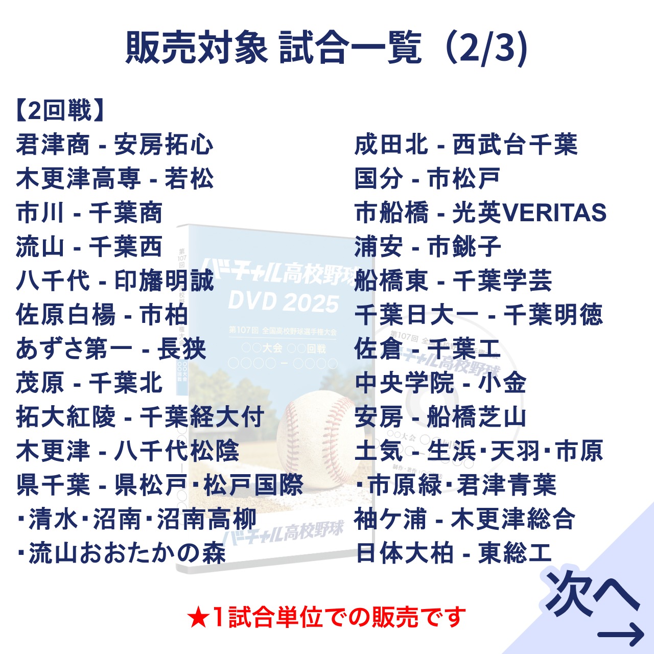 この販売ページでは、千葉大会 2回戦を1試合単位でご購入いただけます。