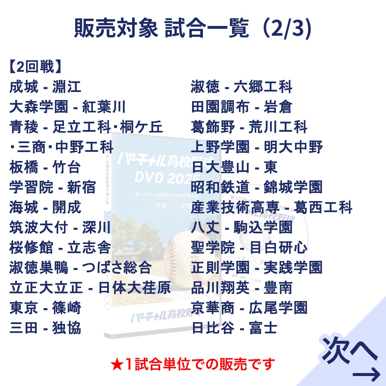 ※一部試合は映像権利・素材の都合上、販売対象外です。