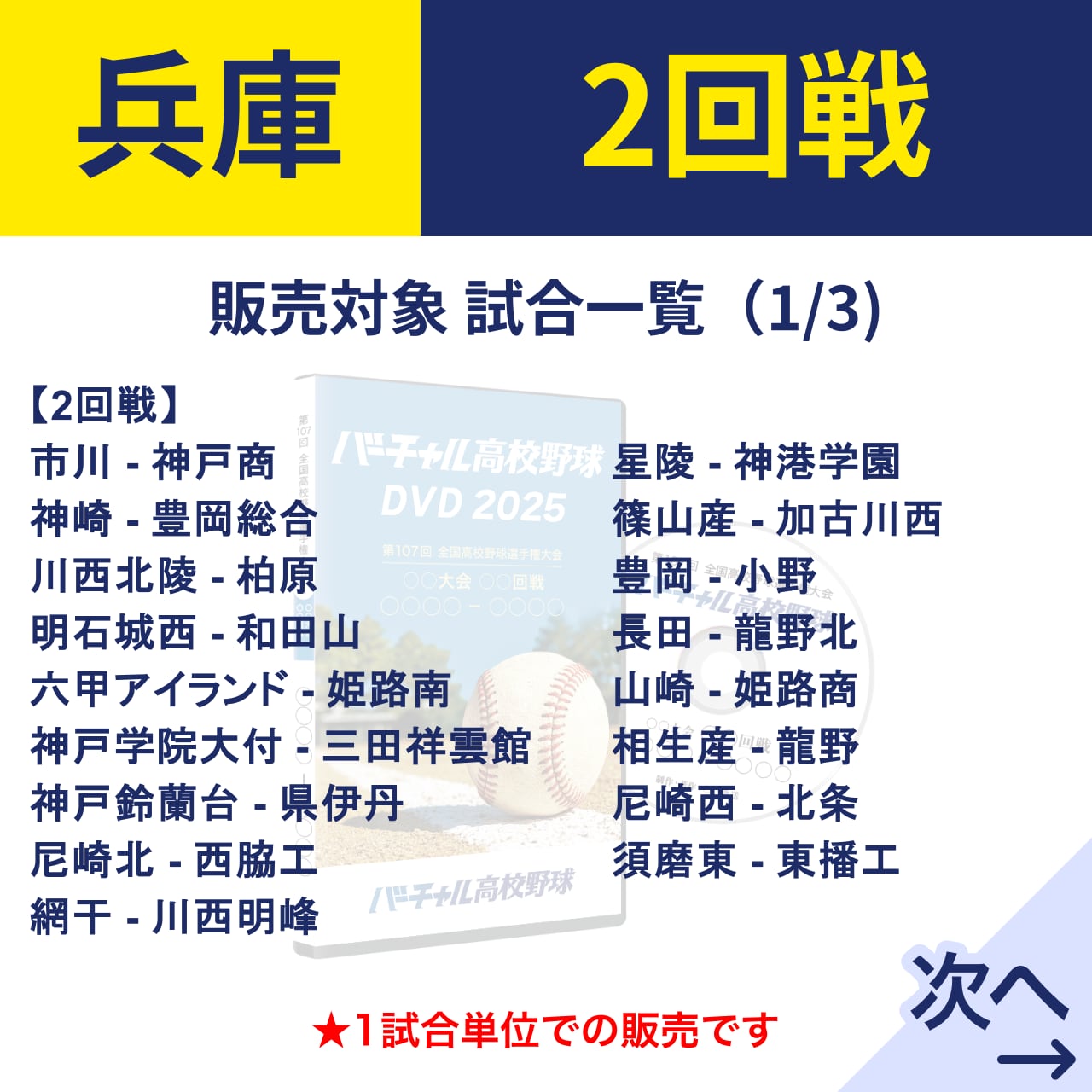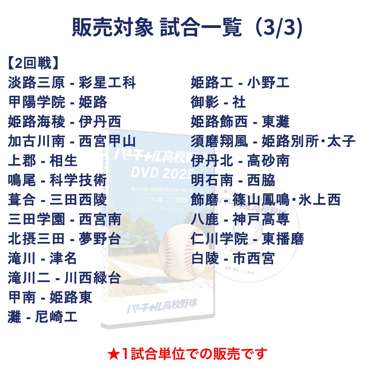 この販売ページでは、兵庫大会 2回戦を1試合単位でご購入いただけます。