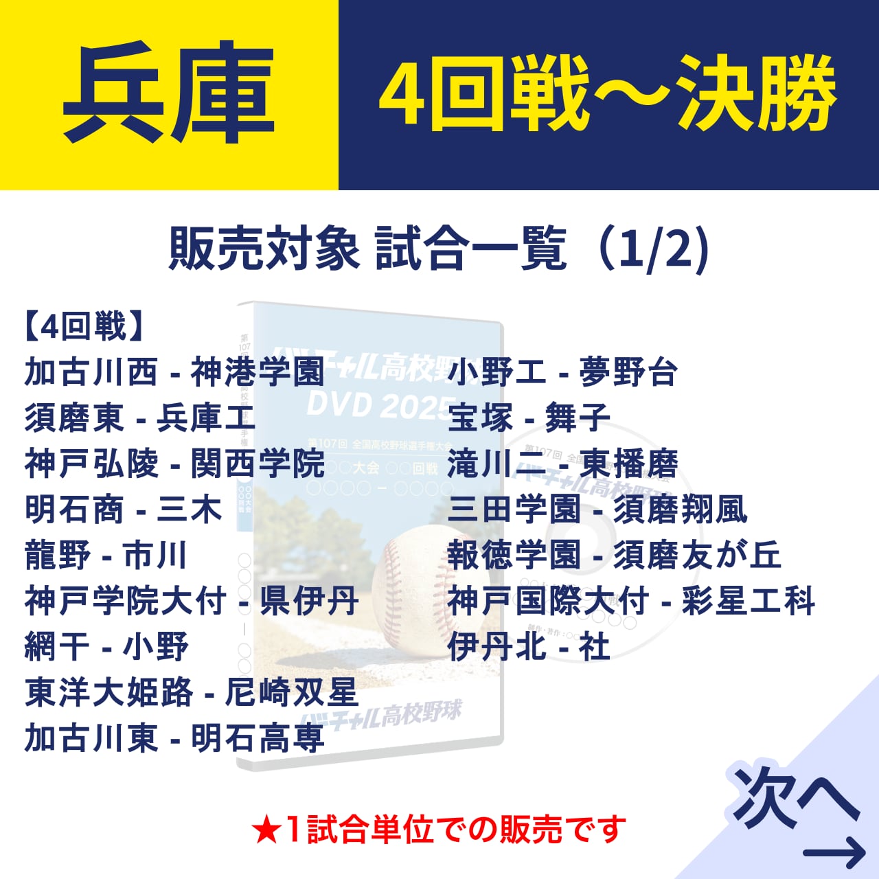 この販売ページでは、兵庫大会 4回戦/5回戦/準々決勝/準決勝/決勝を1試合単位でご購入いただけます。